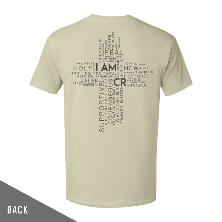 This comfortable, all-day wear tee in a sand beige color is a great conversation-starter so you can share with others how Jesus has transformed your life through recovery. Plus, the encouraging statements on the back will remind you of your strengths and value in Christ when you are feeling down.